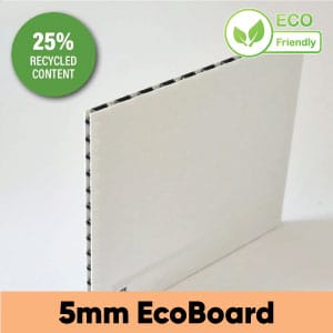 5mm EcoBoard is a lightweight yet more rigid fluted polypropylene board, ideal for signage and display applications where extra strength is needed without adding unnecessary weight.