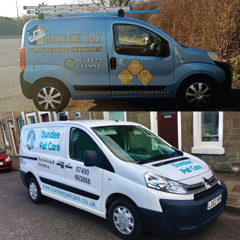 Our van graphics are produced using premium air-escape adhesive vinyl, designed for professional vehicle signwriting. The material allows air to escape during application, reducing bubbles and ensuring a smooth finish.